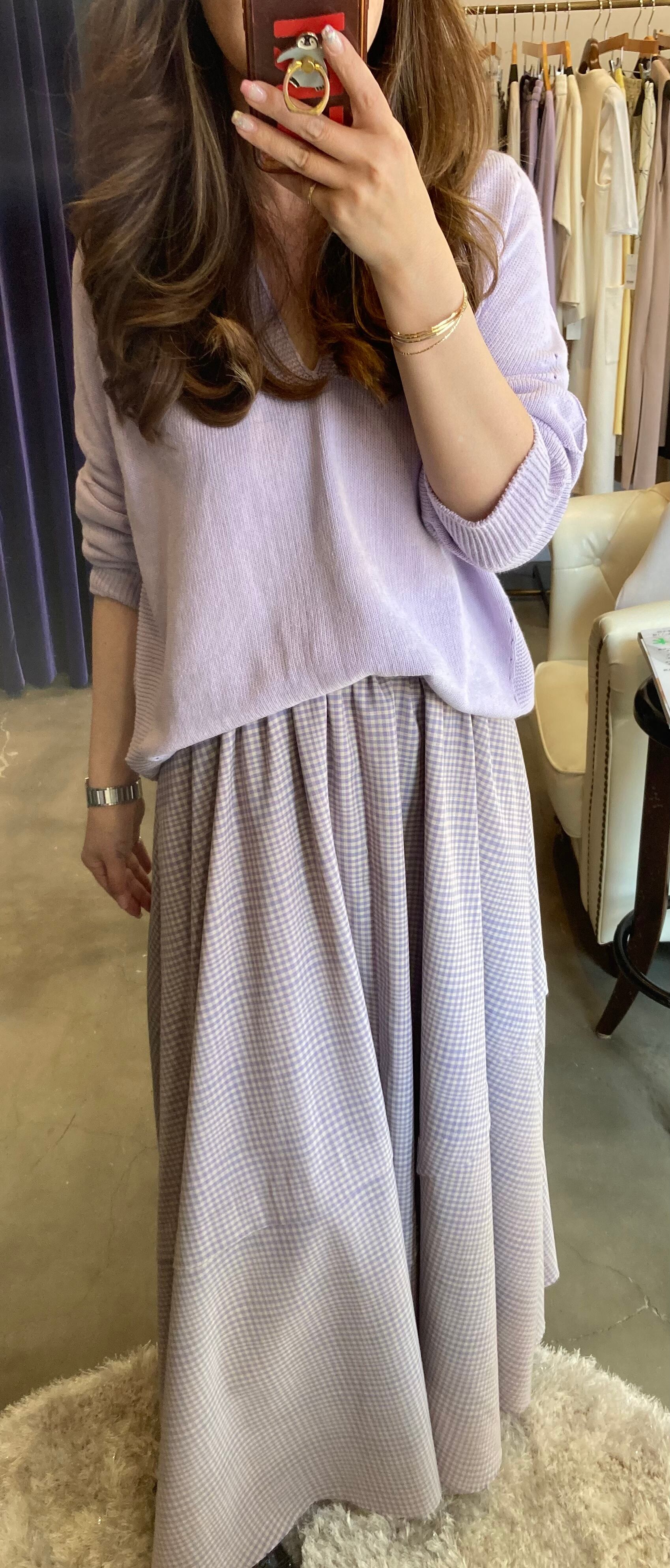 ラベンダーのブロックチェックスカート