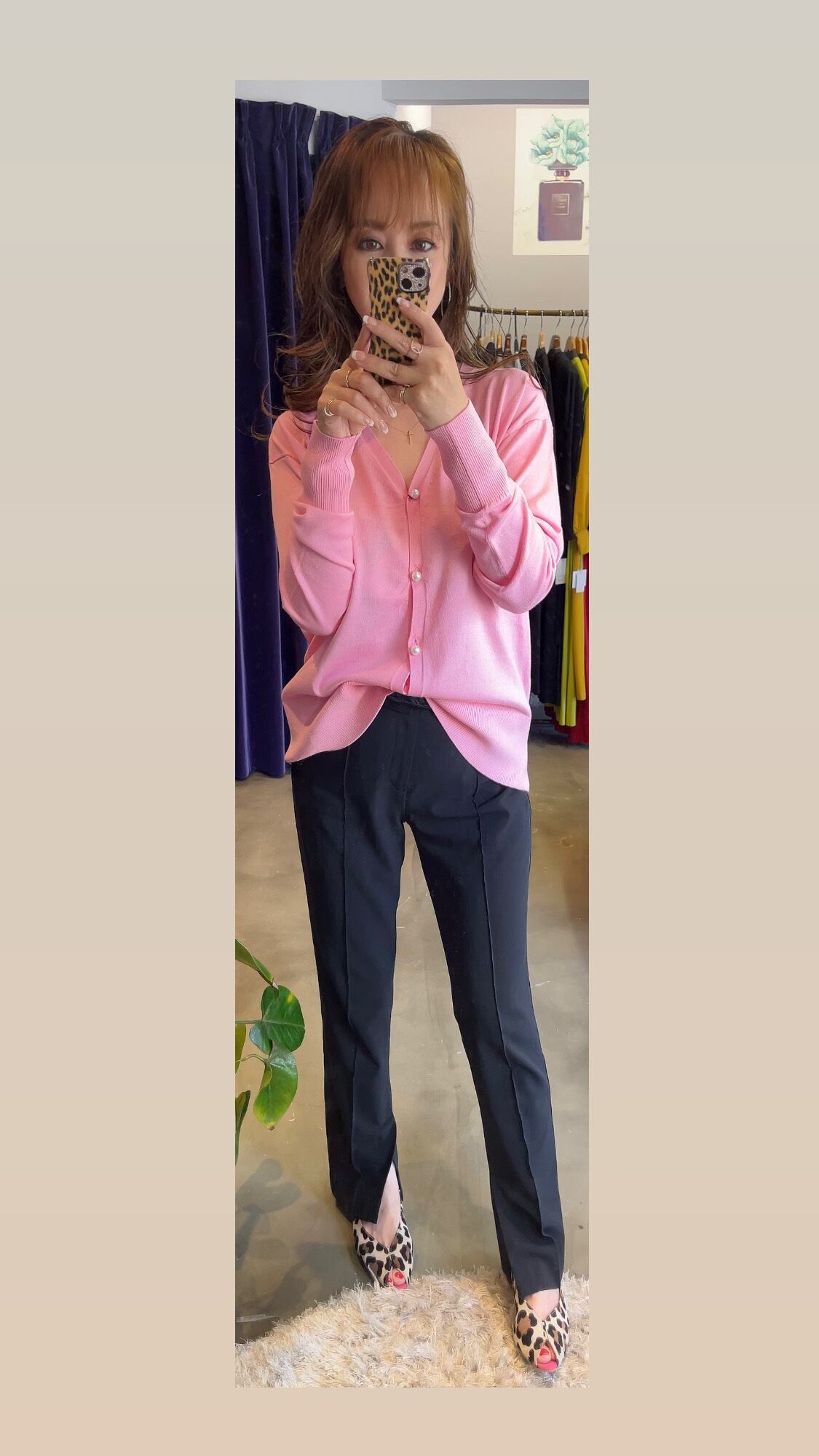 軽い綿レーヨン素材を使った、おしゃれなパールカーディガンです。