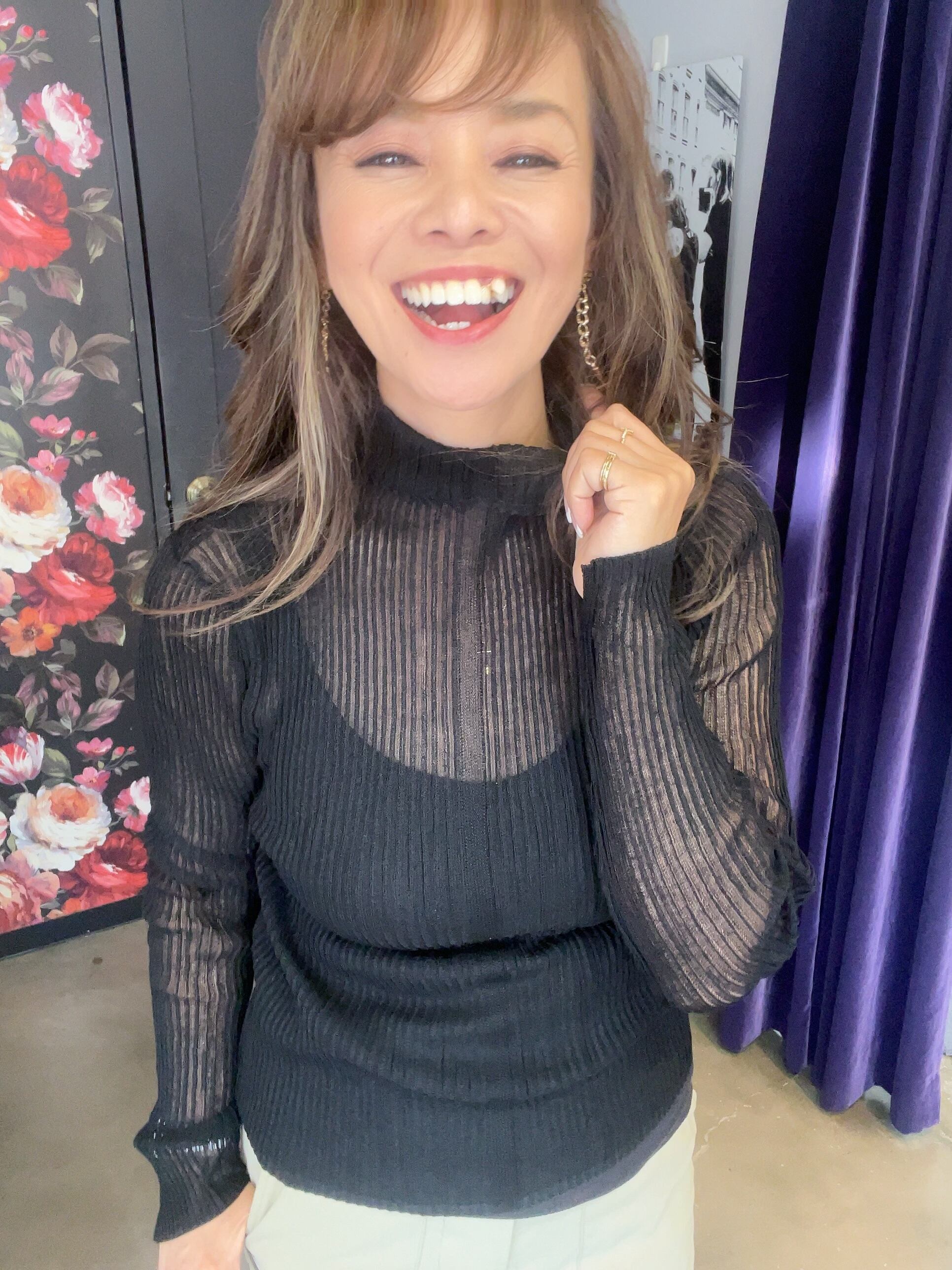 このシースルーリブタートル、カーディガンで、あなたのファッションスタイルをアップデートしてみませんか? 気分も華やかになり、自信をもって日々を過ごせることでしょう。ぜひ、この透け感のある上品なデザインに魅了されてください。